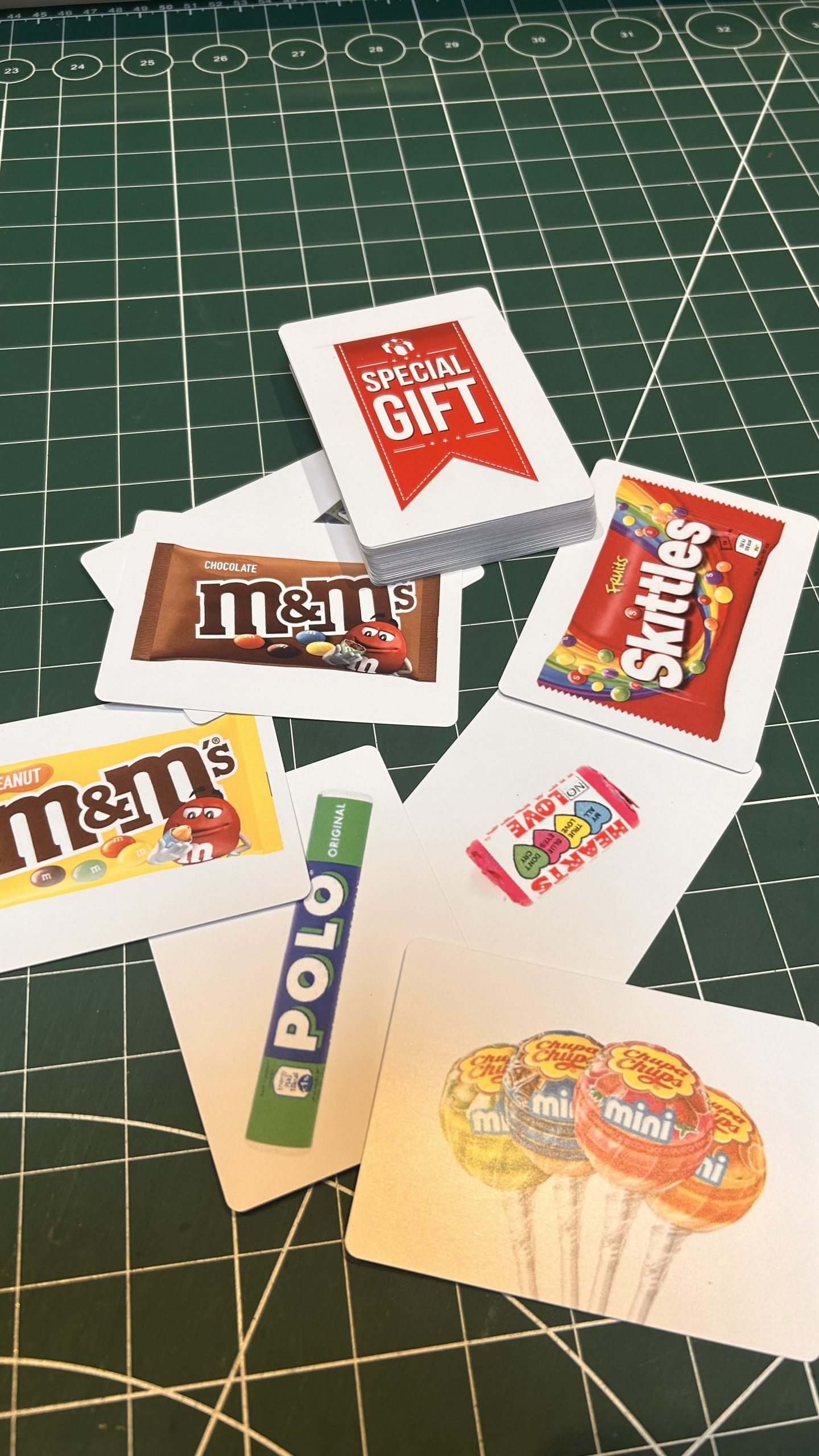 Skittles, m&m’s, mini Chupa’s.